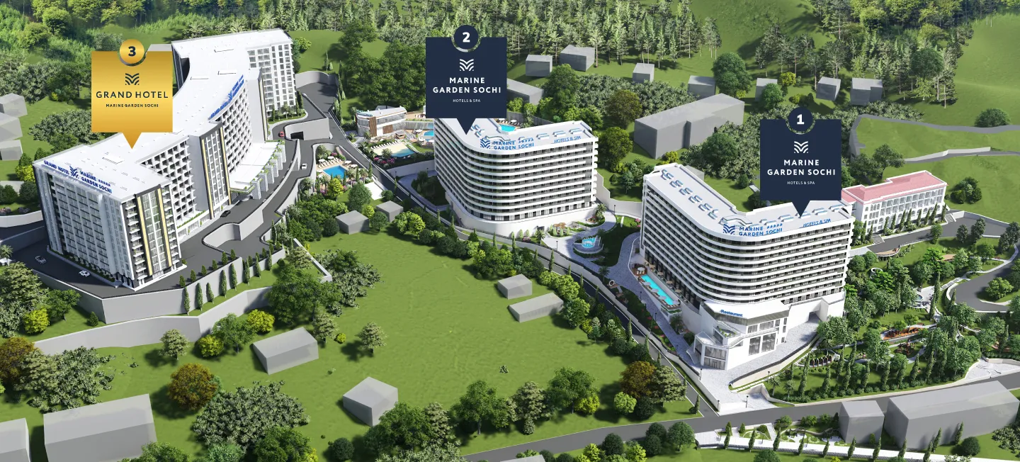 Marine Garden Sochi Hotels & Spa 5* - гостиничный комплекс с уникальной архитектурой, впечатляющим природным ландшафтом, красивейшими видами на море и горы, высоким качеством отделки, оригинальным освещением и дизайнерскими номерами, отвечающие международным стандартам комфорта первоклассного отеля. Пересмотрите ваши ожидания и инвестируйте в стабильное будущее в городе Сочи.